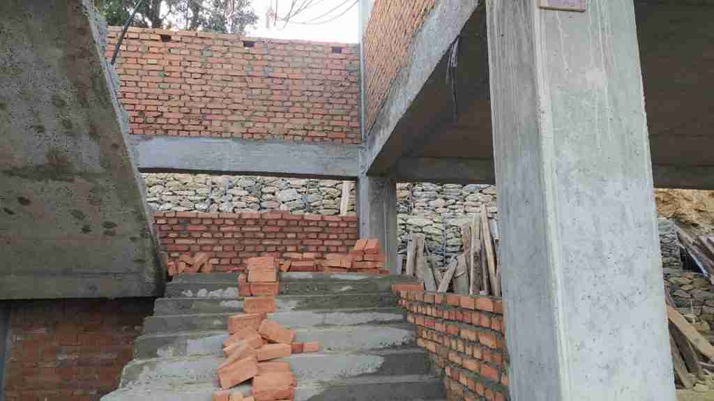 Nadat de het bouwteam in de laatste week van januari weer in Sailung aankwam zijn ze gelijk begonnen met het maken van de vloeren van de begane grond. Hierna is de stellage gemaakt voor de dakconstructie waarop bijna 10 kubieke meter beton is aangebracht. Vrijdag 19 februari was beton-dag, samen met weer een grote groep vrouwen, mannen en jongeren vanuit de gemeenschap is er de gehele dag beton gemaakt en versjouwd. Na afloop een gemeenschappelijke maaltijd met kip. Afgelopen week zijn de muren van de eerste 4 lokalen gemaakt met de witte AAC blokken. Soort stevig gasbeton geschikt voor aardbevingsbestendige bouwwerken.